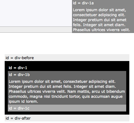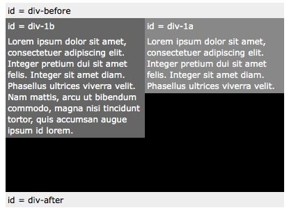 如果我们给 div-1 设置 relative 定位,那么 div-1 内的所有元素都会相对 div-1 定位。如果给 div-1a 设置 absolute 定位,就可以把 div-1a 移动到 div-1 的右上方。