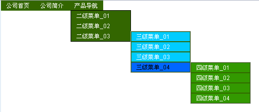 这是一款基于CSS实现的多级菜单,一共可下拉出4级,在编写此类的CSS菜单时要注意,一级的li,a的hover时,设置二级菜单可见,一级的li,a的hover时,设置二级,三级菜单隐藏,一级和二级的li,a的hover时,设置三级和四级级菜单隐藏,一级二级菜单hover时,设定3级菜单可见,一级二级三级hover时,设置四级菜单可见,代码里已加注了丰富的注释,菜单风格如果不适合你口味的话,可自己美化一下。