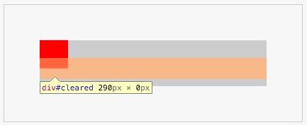 给 #cleared 设置了 15px 的 margin,并且元素的高度、padding、margin 都为0,因此 #cleared 元素的 top margin 和 bottom margin 是相邻的。这个元素的位置如下图所示:
