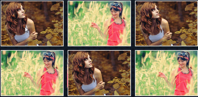 这些鼠标滑过图片时的动画效果都是使用CSS3来完成的,分别有:滑动效果,倾斜效果,翻转效果,旋转效果等等,下面是一张GIF的预览图片。
