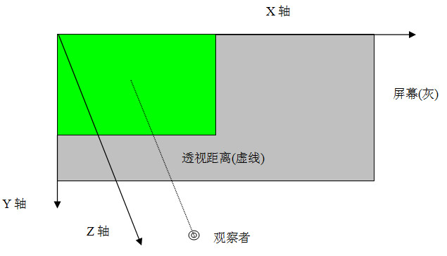 透视距离perspective是指观察者沿着平行于z轴的视线与屏幕之间的距离,简称视距