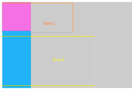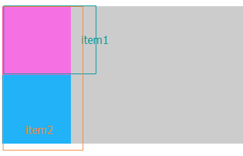 清除浮动前,item1左浮动的效果(此时父元素的高是被未浮动的item2元素的高撑开):
