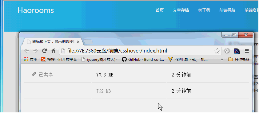 最近在做一个网盘的项目,用到了鼠标移上去效果,这个效果可以用js来实现,今天主要分享一下,这个效果如何用纯css实现!