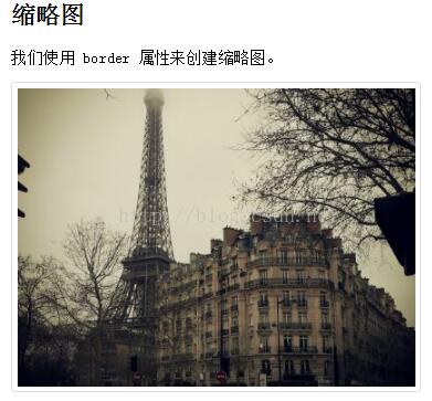 - <p>我们使用 border 属性来创建缩略图。</p>