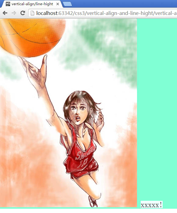 (2)、在div块的图片后面放入一个span标签,内容为xxxx!,会发现span标签内的元素与图片是在底线对其的,当给span加一个背景时,可以看到图片底部是与字母x底部对齐的。