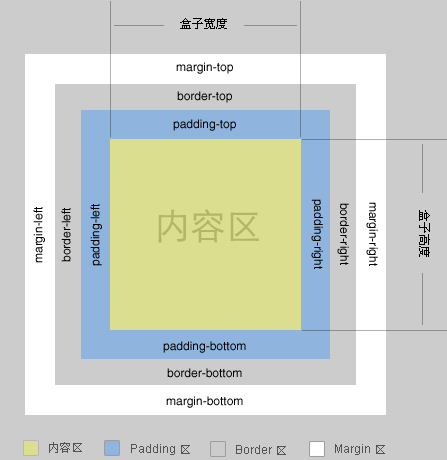 在介绍margin之前,先剖上一张W3C标准盒模型的图片,以便读者可以查看相关位置。
