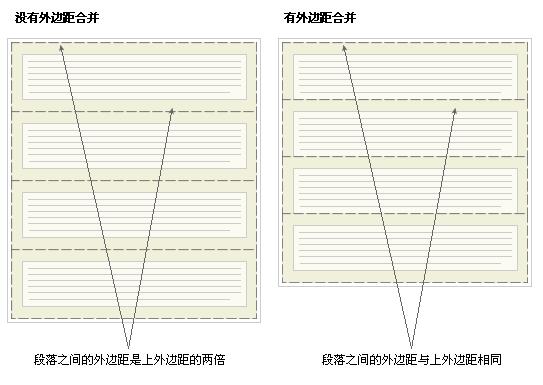 Collapsing margins 的初衷就是为了让段落显示的更加好看。以由几个段落组成的典型文本页面为例。第一个段落上面的空间等于段落的上外边距。如果没有外边距合并,后续所有段落之间的外边距都将是相邻上外边距和下外边距的和。这意味着段落之间的空间是页面顶部的两倍。如果发生外边距合并,段落之间的上外边距和下外边距就合并在一起,这样各处的距离就一致了。