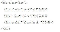 如果有一个DIV作为外部容器,内部的DIV如果设置了float样式,则外部的容器DIV因为内部没有 clear,导致不能被撑开。看下面的例子: