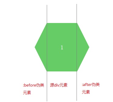 Okay。知道了如何画三角形,在利用CSS伪类:before和:after就可以完成我们想要绘制的六边形了。