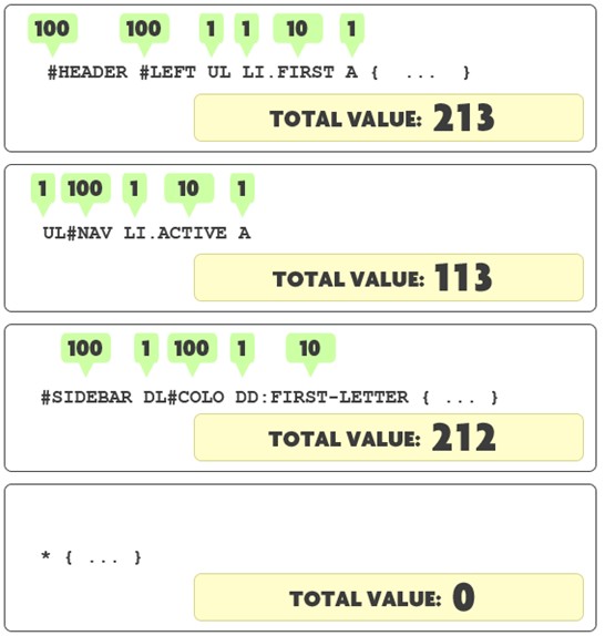 理解选择器的特殊性很重要,特别是在修复bug的时候,因为你需要了解哪些规则优先及其原因。