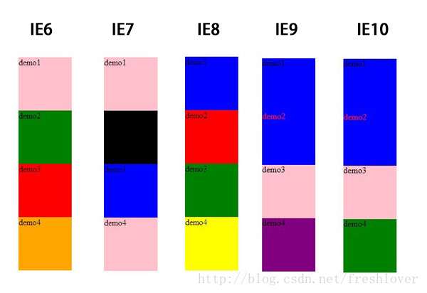 demo1是测试不同IE浏览器下hack 的显示效果