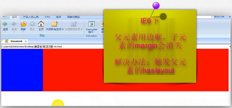 常见问题六:IE6下,父元素用边框,子元素的margin会消失