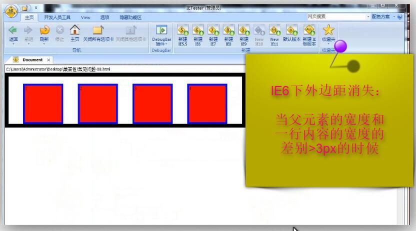 常见问题八:IE6下外边距消失:当父元素的宽度和一行内容的宽度的差别>3px的时候