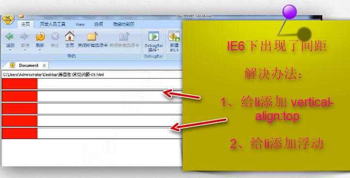 常见问题九:IE6,7下 li本身没有浮动,但是li里面的内容有浮动,每个li下边就会产生一个间距