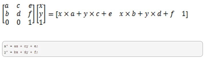 a和d表示缩放且不能为0;c和b控制倾斜;e和f控制位移