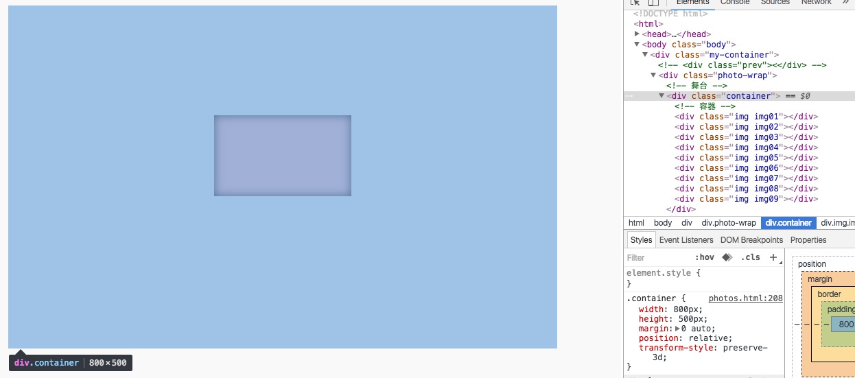 相册容器的transform-style: preserve-3d;样式,表示所有子元素在3D空间中呈现。