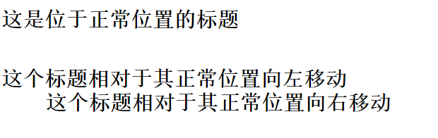 <h2>这是位于正常位置的标题</h2> <h2 class="pos_bottom">这个标题相对于其正常位置向下移动</h2> <h2 class="pos_right">这个标题相对于其正常位置向右移动</h2>