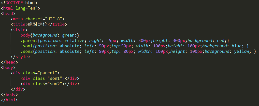 相较于上一个例子,我只修改了class为son的元素的css,设置为position:relative;效果图如下: