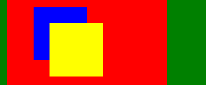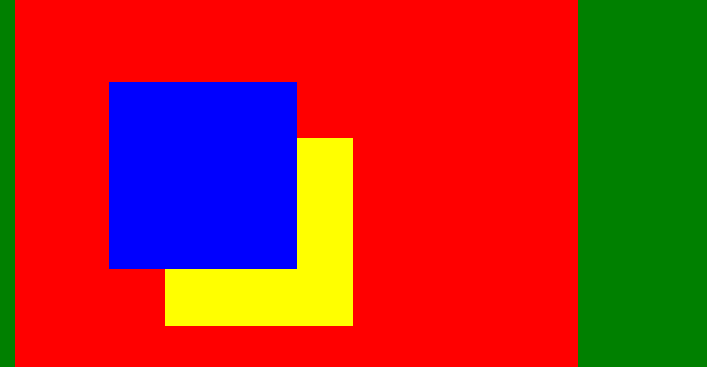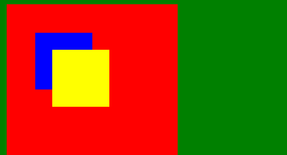如果我们给son2也加上z-index:1;呢?结果得到黄色(son2)就在上面了。(因为一旦z-index值相等,情况就和都不设置index值一样了)