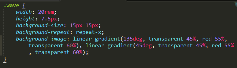 css的设计之巧妙,实现之精妙,细细寻味,其妙非凡,妙不可言。这波浪线,取巧的运用了linear-gradient属性,合角度、颜色、位置于一体,配合background-size,background-repeat,化一为多,平滑过渡。哇,这最后的效果太巧秒了!尘世间没有词来形容了……