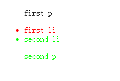 <ul class="demo"> <p>first p</p> <li>first li</li> <li>second li</li> <p>second p</p> </ul>