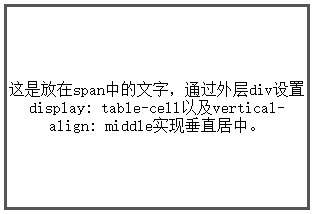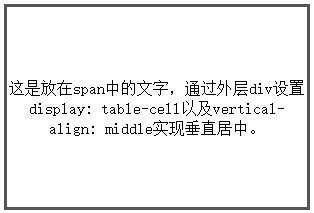 <span>这是放在span中的文字,通过外层div设置display: table-cell以及vertical-align: middle实现垂直居中。</span>