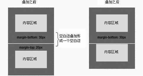 当一个元素出现在另一个元素上面时,第一个元素的底边界与第二个元素的顶边界发生叠加,见图: