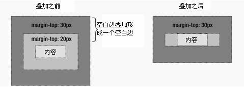 当一个元素包含在另一个元素中时(假设没有填充或边框将边界分隔开),它们的顶和/或底边界也发生叠加,见图: