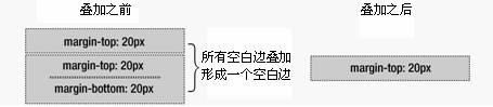 尽管初看上去有点儿奇怪,但是边界甚至可以与本身发生叠加。假设有一个空元素,它有边界,但是没有边框或填充。在这种情况下,顶边界与底边界就碰到了一起,它们会发生叠加,见图: