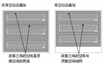 这就是一系列空的段落元素占用的空间非常小的原因,因为它们的所有边界都叠加到一起,形成一个小的边界。