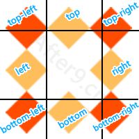 top-left, top-right, bottom-left, bottom-right同样会被抽取出来,与left,top,right,bottom不同的是,他们不会受repeat,stretch,round的影响.