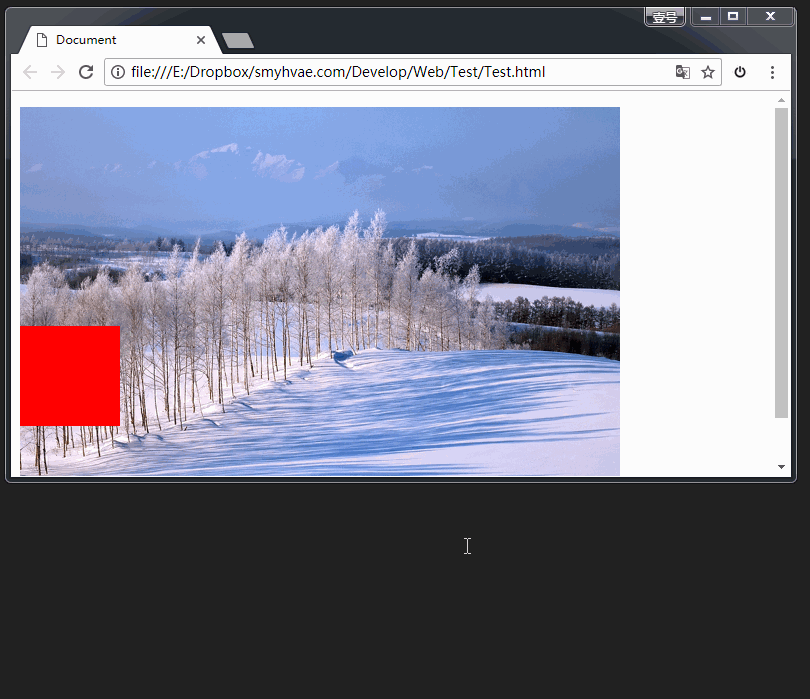 (2)如果用 bottom描述 ,那么参考点就是 浏览器首屏窗口尺寸 (好好理解“首屏”二字),对应的页面的左下角: