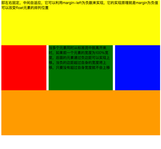 <div id="head">即左右固定,中间自适应,它可以利用margin-left为负数来实现,它的实现原理就是margin为负值可以改变float元素的排列位置</div>