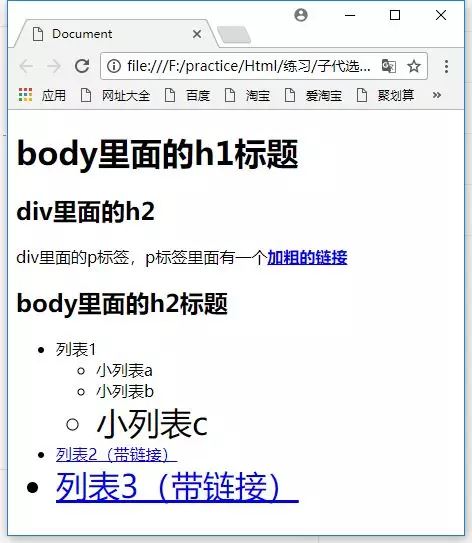 可以看到,“小列表C”和“列表3(带链接)”的字号变大了。因为这两项都是被指定的最后一项。