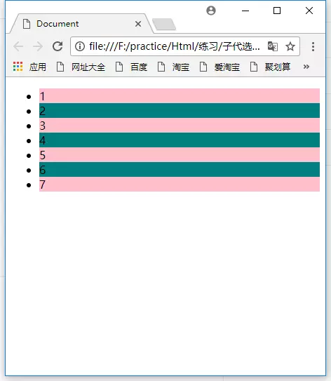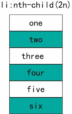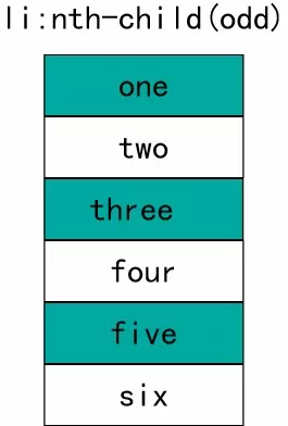 li:nth-child(odd) 的意思是找到<li>元素的父元素,通过父元素来检测每一个<li>的下标的奇偶。