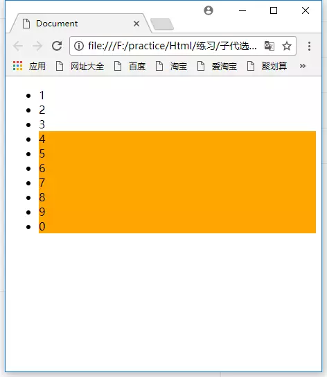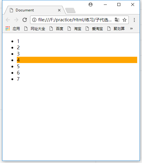 可以给 :nth-child() 指定一个数字,精确选择某个子代。比如说要让第4个<li>的背景色改成橙色。