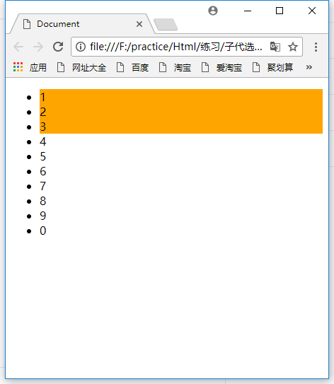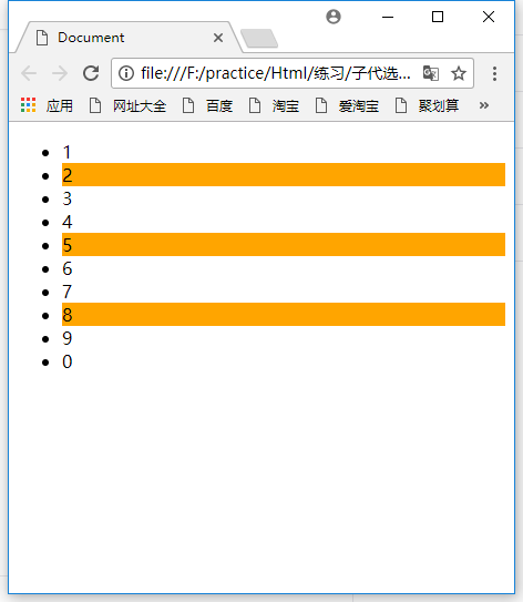 需要注意的是,如果在第一个<li>之前还有其他元素,那第一个<li>的下标就不是1了。