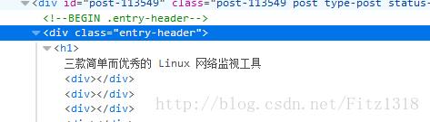 发现是在div class="entry-header"下面的h1节点中,于是打开scrapy shell 进行调试