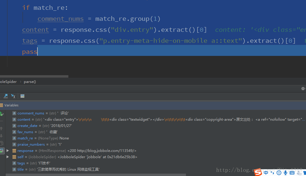 注意的是两个冒号。使用CSS选择器真的很方便。同理我用CSS实现字段解析。代码如下