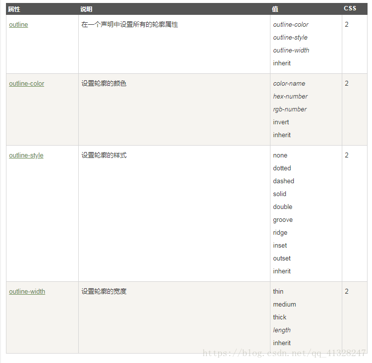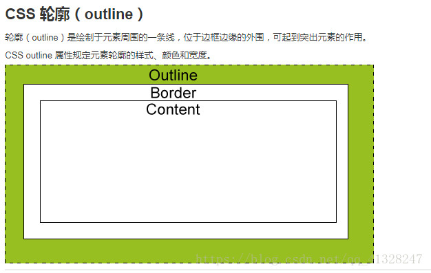 轮廓(outline)属性指定元素轮廓的样式、颜色和宽度。