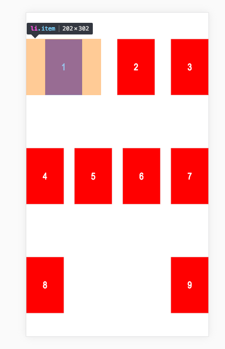 //没有设定 flex-grow 时 <li class="item" style="flex-grow:0;margin: 0 100px;">1</li> <li class="item" style="flex-grow:0;">2</li>