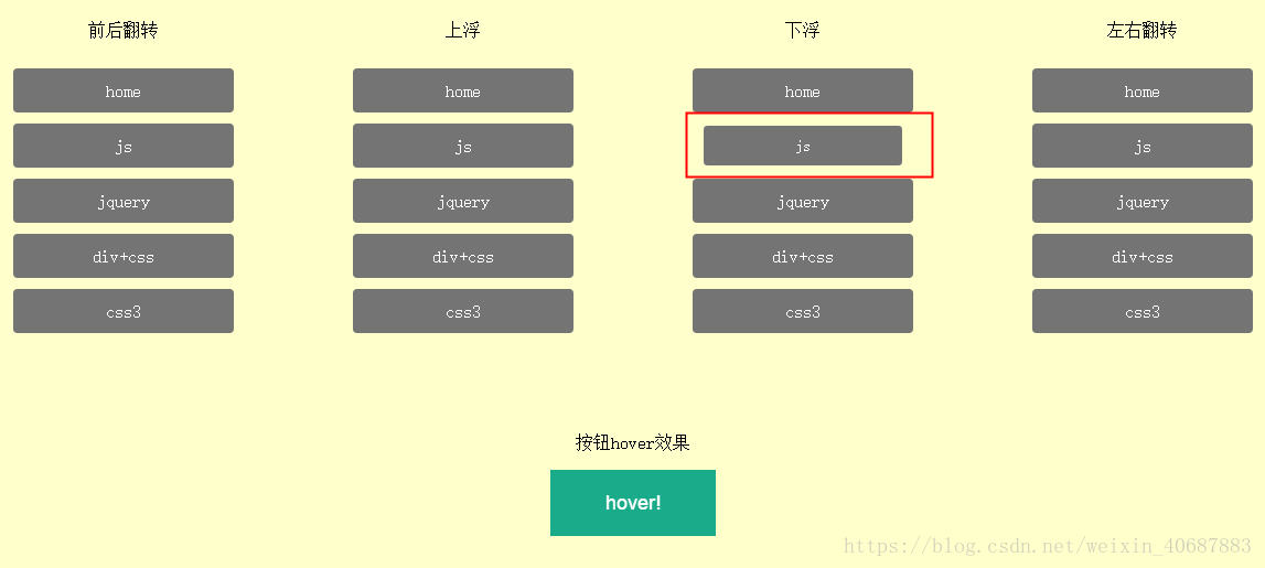 以上所述是小编给大家介绍的CSS3实现可翻转的hover效果,希望对大家有所帮助,如果大家有任何疑问请给我留言,小编会及时回复大家的。在此也非常感谢大家对脚本之家网站的支持!