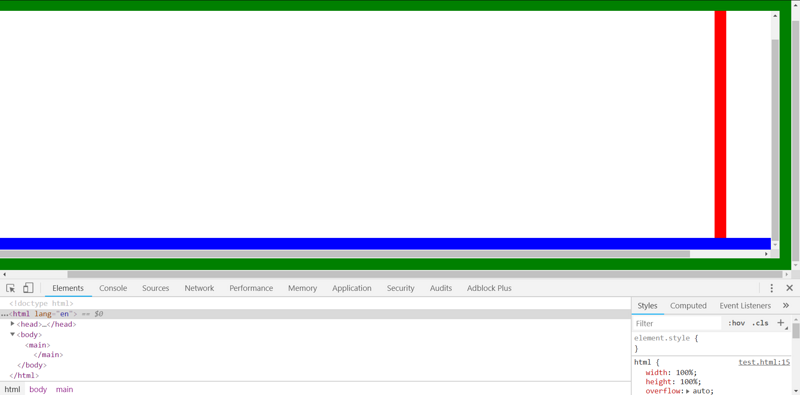 当然,你也可以通过很多其他的方式来触发visual viewport的溢出,比如增大html元素,或者在body中弄一个position: absolute的div */