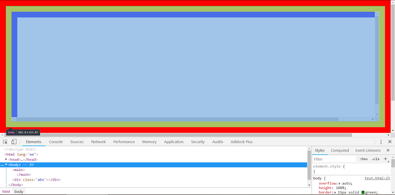 利用以上原理,使visual viewport和<body>都拥有横、竖滚动条,总共4个滚动条。不能使用overflow: scroll(这样就太简单了)。