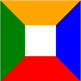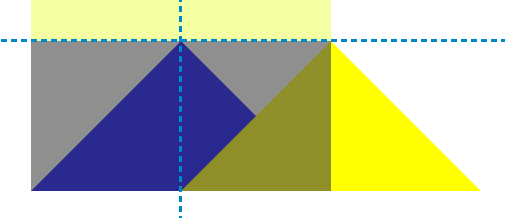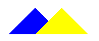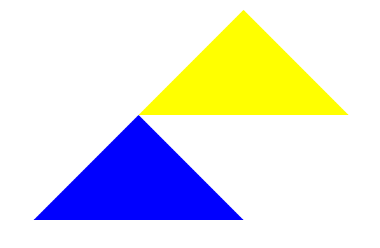 随后需要定义黄色三角形,由于黄色三角形的定位需要参考蓝色三角形的位置,所以需要用到绝对定位方法。为此还需要将黄色三角形作为蓝色三角形的子元素。一个可行的办法是在蓝色三角形内部定义一个额外的标签以表示黄色三角形,但为了节约标签起见,更好的办法是使用 伪元素 :