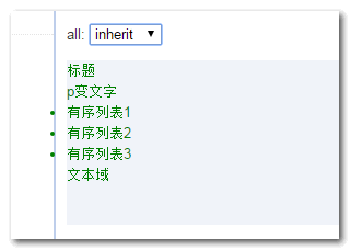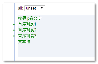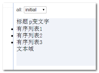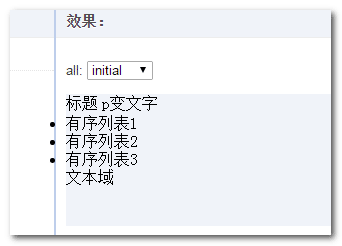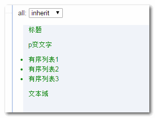 现在,点击demo的下拉,选择对应的all属性值,实现下面CSS效果:
