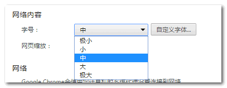 font-size也使用了浏览器软件本身设置的大小16px,color颜色也变成了浏览器软件本身的黑色。例如,在浏览器设置中改变字号,从中变成大: