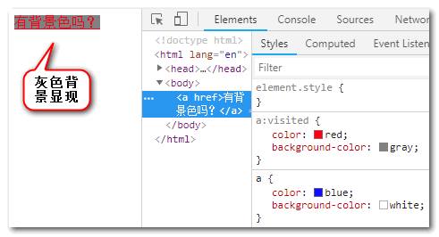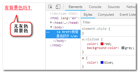 请问下面这段CSS,访问过的 <a> 元素会有背景色吗?