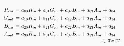 通过矩阵计算,得到的Rout Gout Bout Aout就是最终显示出来的rgba值。