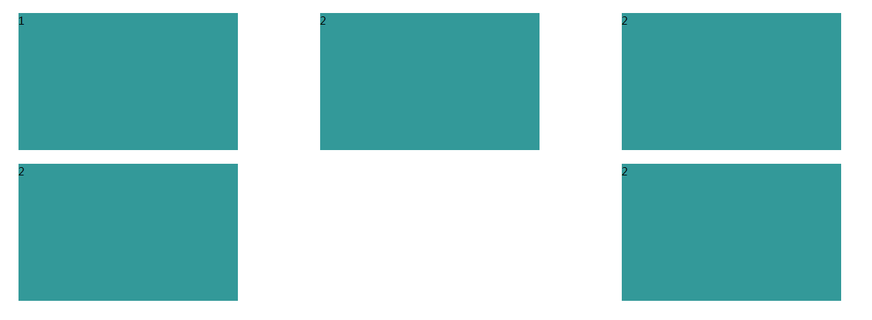 但是我们会发现,显示开发中,我们不仅会遇到三列布局,四列五列等等也是很常见的,那么这个时候显然上面的做法就不行了,那么怎么解决呢,方案也很简单,原理都是一样的,利用空元素占位,这次我们不使用伪元素,我们使用真正的dom元素,来进行操作:
